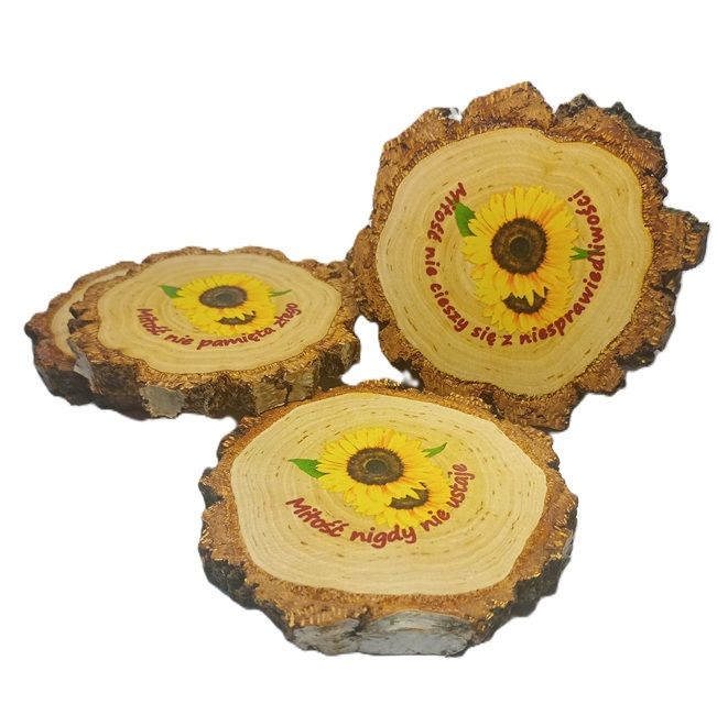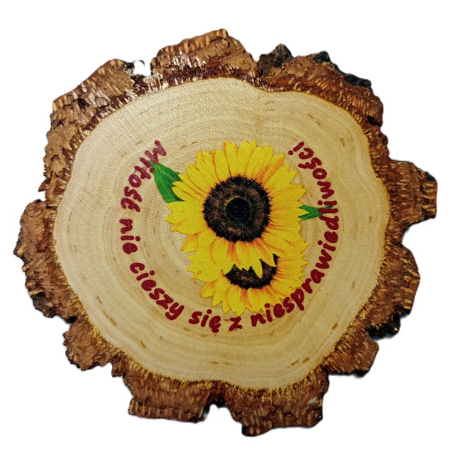 Podkładka o grubości 11 mm z naturalnego drewna brzozowego z korą , zabezpieczona lakierem, kształ nieregularny, zależny od przekroju pnia.