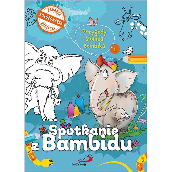 Kolorowanka z naklejkami i zadaniami - przygody słonika Bombika