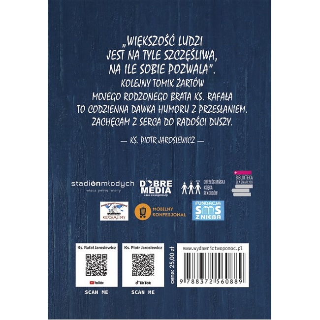 Choć mam przygotowanych jeszcze pięć podobnych tomików „Żartów”, to cieszę się, że kolejna część, czyli trzecia, trafi do Was. Dla tych, którzy czytali „Żarty do życia Ewangelią” lub „Żarty do kazań”, nie będzie to zaskoczeniem, że wiele zebranych tu dowcipów to suchary, niemniej jednak staraliśmy się, aby dodatkowo dopisane zdanie, tzw. post skrypt, naprowadzało na inspirację dobrem, a w konsekwencji nawet na wykonanie jakiegoś dobra! Jeśli po lekturze niniejszego tomiku ktoś będzie choć odrobinę lepszym człowiekiem, to nasza praca – wybór i opracowanie tych żartów – sucharów – miała sens! Cieszymy się jednocześnie, że pierwsze dwie części bardzo dobrze zostały przyjęte przez młodsze pokolenie! W wielu domach – dzieci i młodzież – często znają całe tomiki na pamięć! Wywołało to u mnie uśmiech, gdy siedząc przy kolacji z rodzicami, mogłem widzieć radość płynącą z cytowania przez młodzież i dzieci dowcipów z dwóch pierwszych części. - ks. Rafał Jarosiewicz