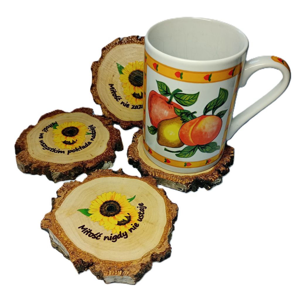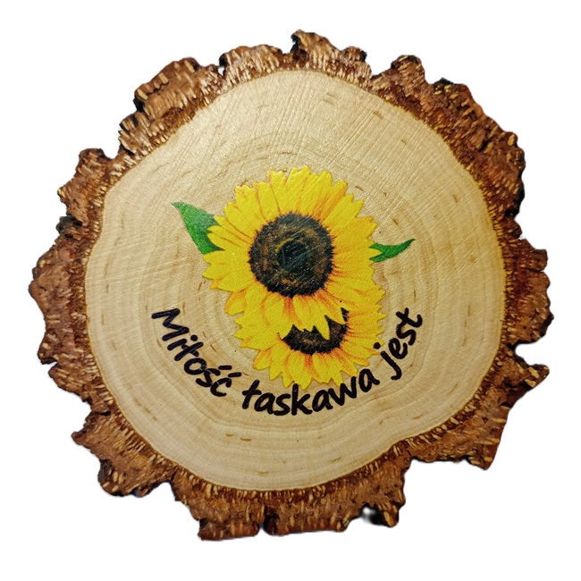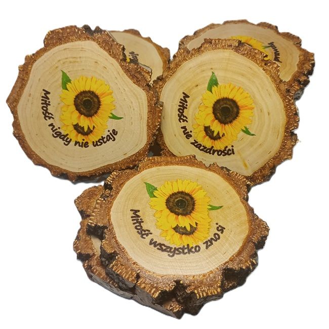 Podkładka o grubości 11 mm z naturalnego drewna brzozowego z korą , zabezpieczona lakierem, kształ nieregularny, zależny od przekroju pnia.