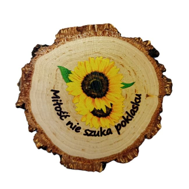 Podkładka o grubości 11 mm z naturalnego drewna brzozowego z korą , zabezpieczona lakierem, kształ nieregularny, zależny od przekroju pnia.